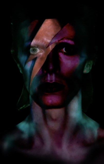 Soundscape Strategy: A metaphorical 'space' guided our sonic approach and provided thematic anchors using a combination of tracks taken from original sessions and new instrumentation, we extrapolated, deconstructed, and remixed Bowie’s music for presentation over an immersive twenty-channel speaker array. Vintage 'space,' ancient strings. " Rather than playing direct lifts of Bowie’s commercial recordings (which could cause harmonic clash and diminish immersion), we developed new “audio space diasporas”—original modulating beds and motifs with analogue synth, droning guitars, mellotron, and period instrumentation.